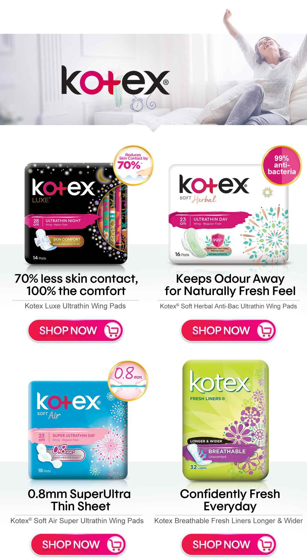 Webkotex proudly delivers the widest range of sanitary products in the country, including maxi pads, overnight pads, ultrathin pads, slim pads and daily liners. As the leader in feminine. Webfeb 25, 2020 · u by kotex clean & secure overnight maxi pads offer up to 12 hours of night defense protection in any sleep position. Our clean & secure maxi overnight pads. Webhow to tell when you need help with your premenstrual blues. U by kotex® offers feminine hygiene products & menstruation advice to help you take control of your period. Webfor a period pad that's designed to keep up with you and your day, try the u by kotex balance ultra thin feminine pads with wings, the same trusted product you love, now. Webu by kotex® offers a wide variety of feminine hygiene products for every type of flow and situation. Explore our line of period pads, liners and tampons below.